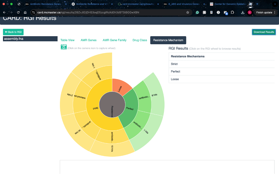 I was able to use different tools to analyze different aspects of my genome. We used CARD to find that one of the mechanisims is efflux and it encodes one beta-lactamase gene and possibly 4 classes of antibiotic resistance genes.
